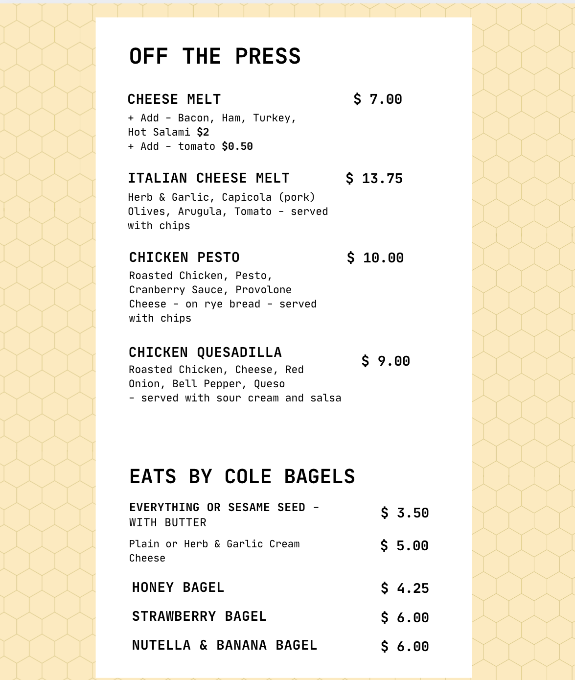 Menu + Online Orders